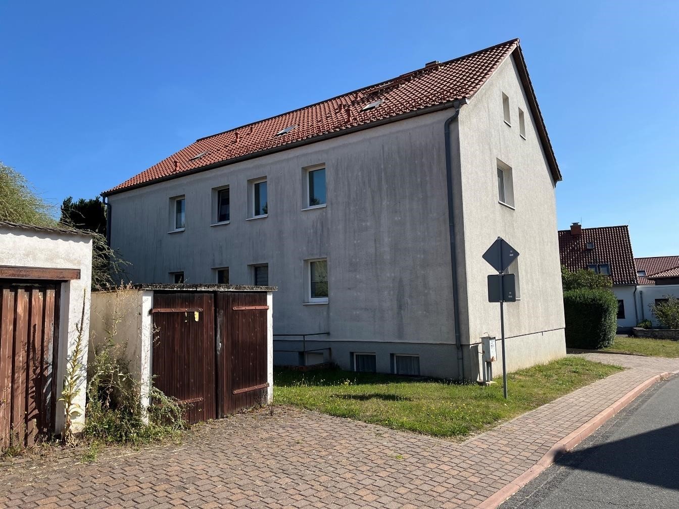 Es handelt sich um ein freistehendes Mehrfamilienwohnhaus mit einer Wohnfläche von 228 m². Die 4 Wohnungen sind in eine Größe von je ca. 57 m² aufgeteilt. Zu dem Objekt gehören noch 4 Nebengelasse, die mit verkauft werden.