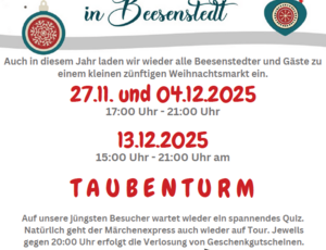 Weihnachtsmarkt in Beesenstedt am 27.11.2025, 04.12.2025 und 13.12.2025