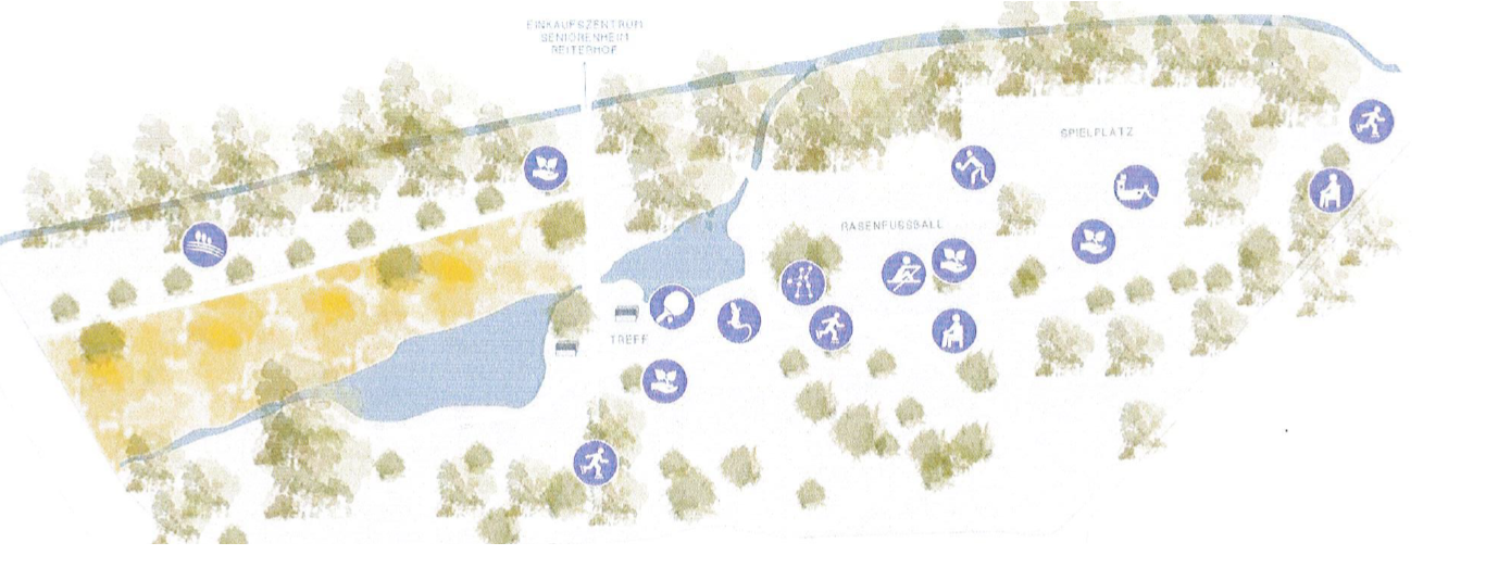 durch Anlegen neuer Wege, Pflanz- sowie Sport- und Spielbereiche