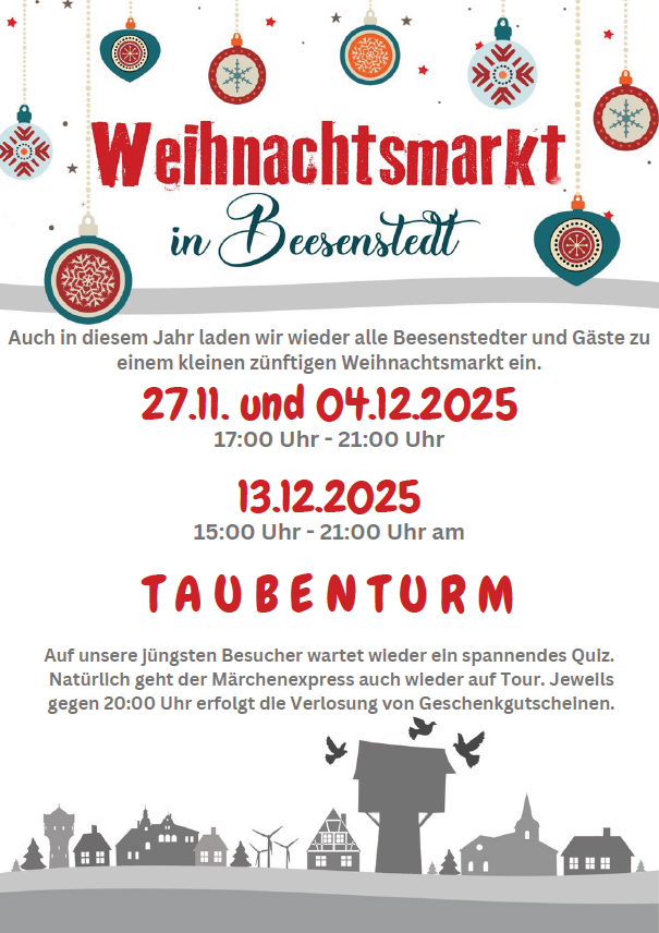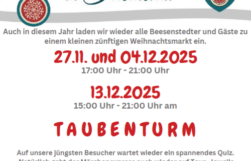 Weihnachtsmarkt in Beesenstedt am 27.11.2025, 04.12.2025 und 13.12.2025