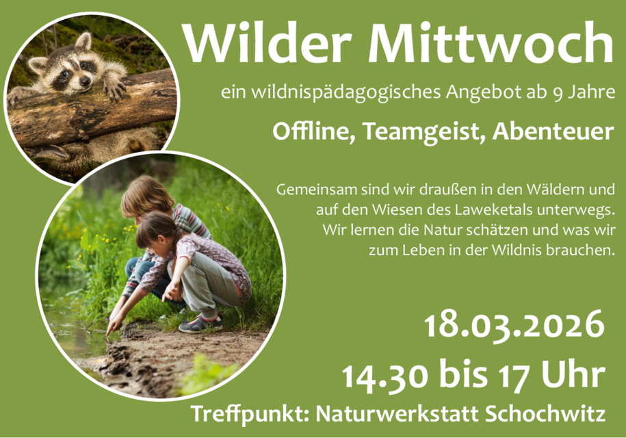 Wilder Mittwoch - ein wildnispädagogisches Angebot ab 9 Jahre der Naturwerkstatt Schochwitz